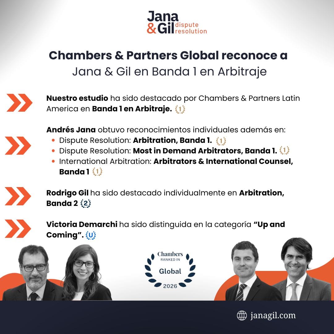 We are proud to share that Jana & Gil Dispute Resolution has once again been ranked by Chambers & Partners Global in Band 1 for Arbitration, reinforcing our leadership in the practice at the international level.
